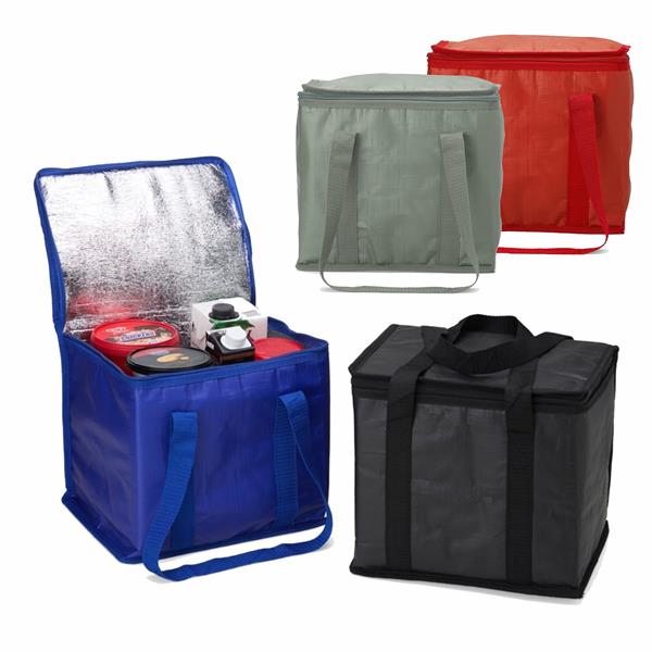 Bolsa térmica polietileno com capacidade de 12 Litros. Contém alça de mão em nylon. Gravação da logomarca em 1 cor já inclusa.