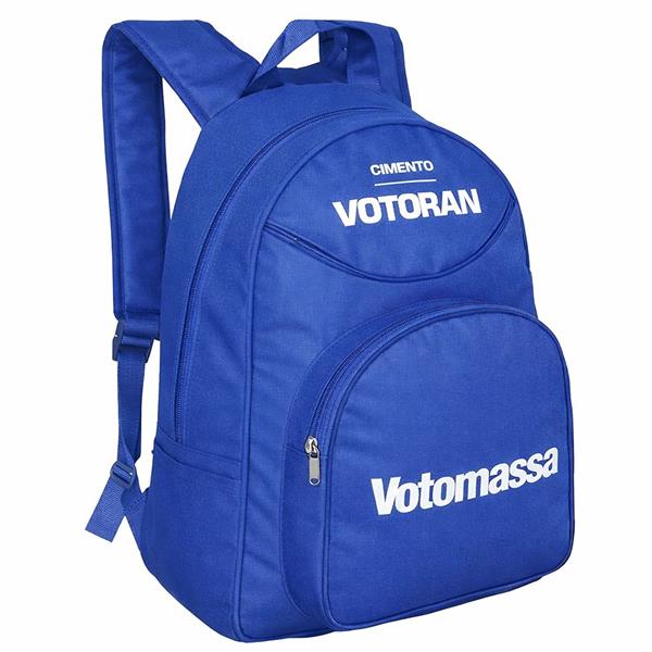 Mochila básica em poliéster, bolso frontal, alça de mão e alça dupla de ombro regulável. Alça de ombro e costas acolchoadas. Disponível em várias cores. Gravação da logomarca em 1 cor já inclusa.