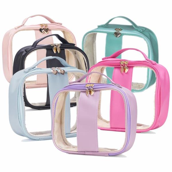 Nécessaire em PVC e com bordas em PU, ela é impermeável, fazendo com que ela também seja uma opção segura e funcional para carregar itens essenciais para um banho de mar ou piscina como protetores solares, bronzeadores, entre outros produtos para cuidados com a pele e cabelos. Além disso, o nécessaire conta com uma alça para mãos e fechamento em zíper com puxadores em formato de coração para dar aquele toque extra de charme. Gravação da logomarca em 1 cor já inclusa.